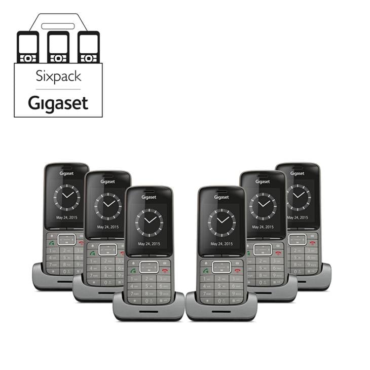Dit 6-pack Gigaset SL750H Pro bestaat uit zes handsets voor gebruik in professionele omgevingen. De handsets hebben grote kleurendisplays en HD audiokwaliteit en zijn compatibel bovendien met Single-Cell en Multi-Cell.