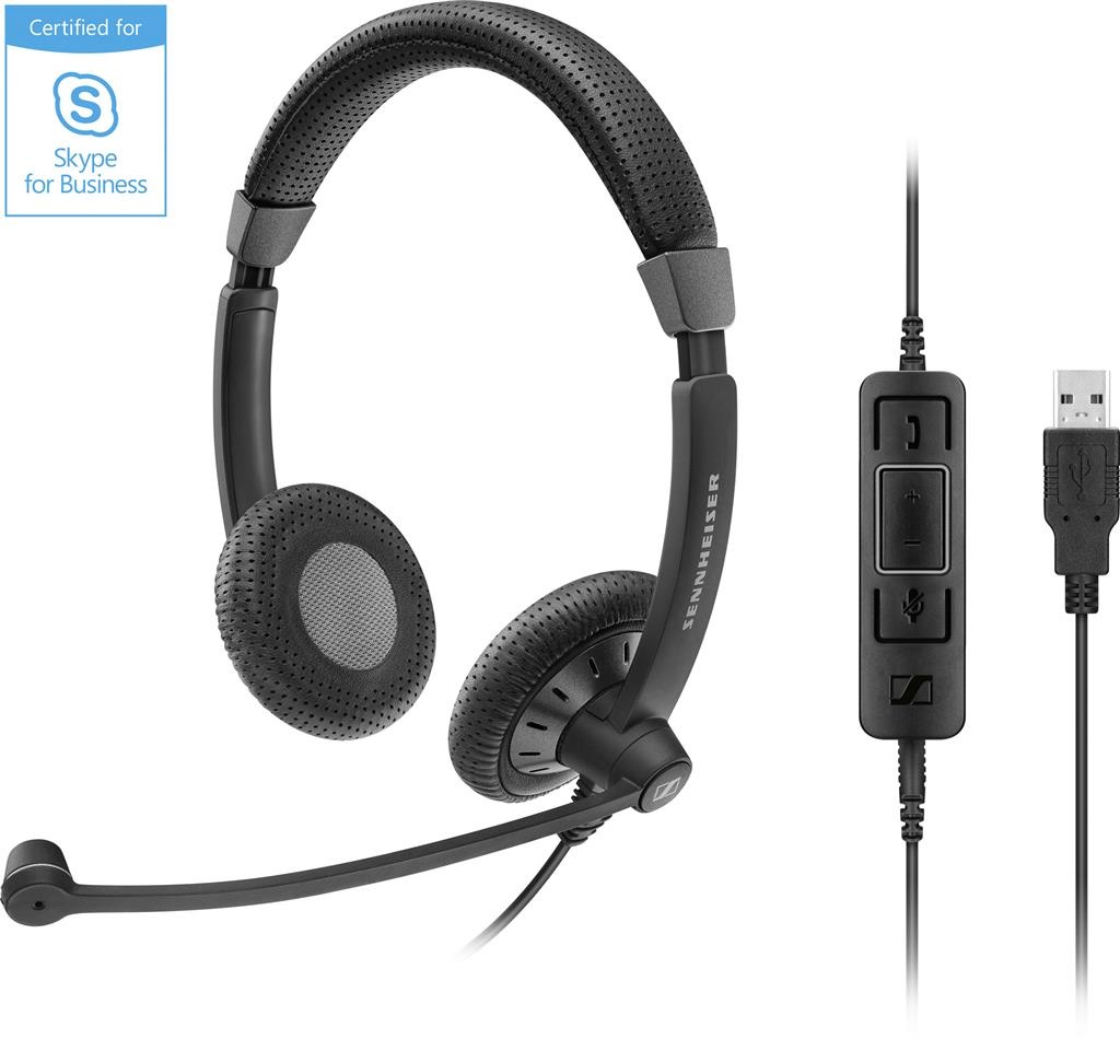 Een dubbelzijdige bedrade headset die is gecertificeerd voor Skype voor Bedrijven, met een directe pasvorm, een uitstekend geluid en een verfijnde stijl.