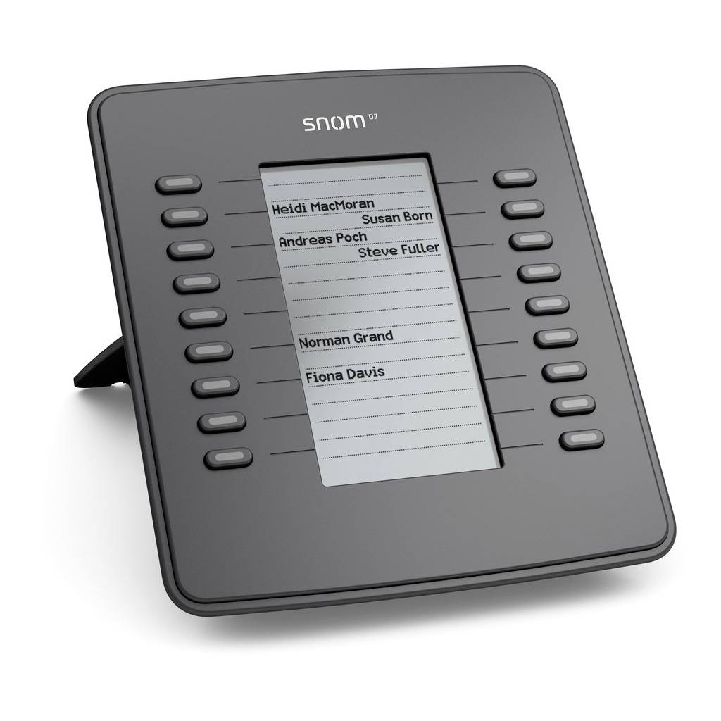 De Snom D7 is een uitbreidingsmodule voor de SNOM D700 serie VoIP telefoons. De Snom D7 biedt 18 programmeerbare knoppen met LED verlichting en een helder scherm met backlight.