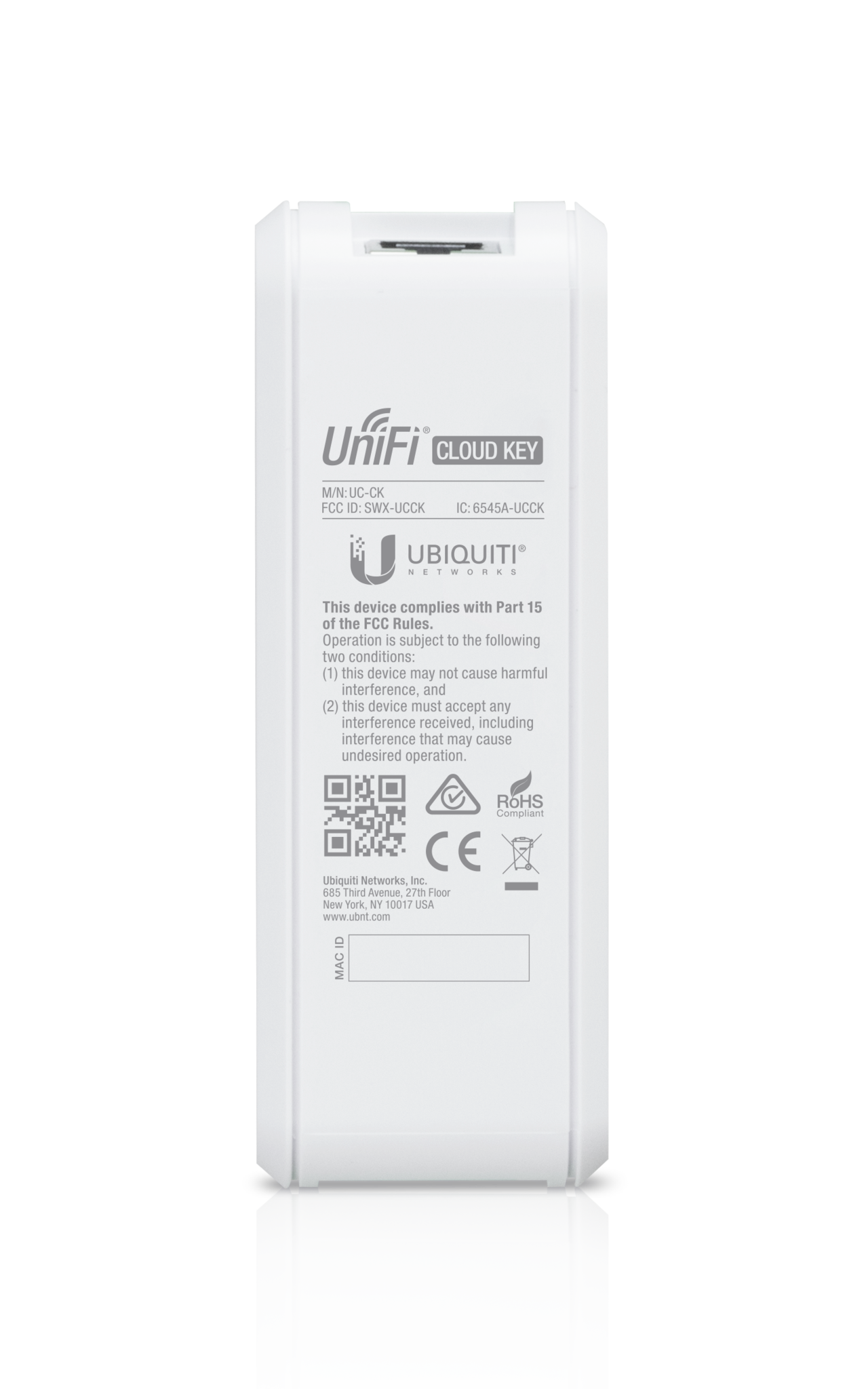 De Cloud Key bevat een quad core processor met 2GB RAM en werkt met de nieuwste versie van UniFi Controller. Hij wordt gevoed via Power over Ethernet (802.3af) en kan op de meeste switches worden aangesloten, alternatief kan hij gevoed worden via USB-C